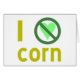 Ich hasse Mais. Das Design verwendet gelbe Buchstaben, ein grünes Herz und das internationale "NO" Zeichen, um zu lesen: "Ich hasse Mais". Für diejenigen, die nicht "Herz" es.