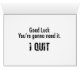 " Viel Glück. Sie werden es benötigen. Ich beendigte" beendigt diesem crappy Job mit etwas Art!