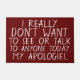 Suchen Sie nach einer Fußmatte, um zu verwenden, wann Sie keine Besucher wollen? Dieses ist eine coole Burgunder-Farb"entschuldigende" Zitatfußmatte, die sagt: "ICH WIRKLICH WILL, UM MIT NIEMANDEM HEUTE ZU SEHEN ODER ZU SPRECHEN. MEINE ENTSCHULDIGUNGEN." in den großen weißen Buchstaben.