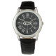 Uhr, Vintage Männeruhr mit schwarzem Lederarmband
