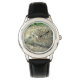 Uhr, Vintage Männeruhr mit schwarzem Lederarmband