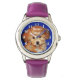 Uhr, Kinderuhr aus Edelstahluhr mit lila Lederarmband