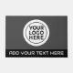 Maßgeschneiderter grauer Geschäftsprug / Doormat mit eigenem Logo oder Bild und personalisiertem Text mit Namen, Zitat, Stunden oder Telefonnummer in weißer moderner Sans-Serif-Typografie. Versuchen Sie es hier zu sehen, wie es aussieht! Wenn Sie eine Designanfrage haben oder Hilfe benötigen, kontaktieren Sie mich über den Zazzle Shop-Nachrichtentasten.