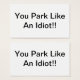 Müde von Menschen Parken wie Idioten? Verlass dies auf dem Auto der nächsten Person, die zwei Parkplätze nimmt, Parkplätze zu nah für dich oder Parks in einer Parkzone ohne Parkplatz.