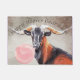 Dieses Freskengemälde einer Ziege mit majestätischen Hörnern, die eine Bläschenblase blasen, sagt "Happy Hooves Goat Farm" (Sie können den Willkommenstext ändern) Ziegenliebhaber Willkommen Mat Auf einem Champagner-farbenen Aquarell, - ideal für Ziegenshows auch