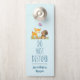 Türhänger personalisiert mit einem Namen und einer niedlichen Abbildung mit einem Hirsch und einem kleinen Eichhörnchen mit Eichel und einem Schmetterling, der über ihren Köpfen fliegt. Diese bezaubernden Waldkreaturen auf einem Gras stehend, mit einigen skurrilen Pilzen an den Füßen. Hellblauer Hintergrund. Im Text steht: Nicht stören mit einem personalisierten Namen.