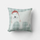 Dieses Kissen ist ideal für Weihnachten oder Winter dekoriert mit bemalten Illustrationen der arktischen Tiere im Strick Winterhütten. Auf der Vorderseite gibt es eine Eisbärenillustrierung und auf der Rückseite eine Rentiergrafik. Die Grafiken sind Set vor einem weichen, minten gemusterten Hintergrund.