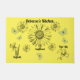 Drei wunderschön illustrierte Blume auf einer zarten gelben Kulisse. Hinzu kommen kleine hellblaue Schmetterlinge. Fügen Sie Ihre eigenen Wörter zur Anpassung hinzu.