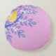 Illustrierter Gelbbvogel auf rosa Hintergrund Rundes Kissen
