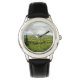 Uhr, Vintage Männeruhr mit schwarzem Lederarmband