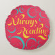 "Always Reading" ein helles rosa, blau und gelb Design mit Wirbel. Perfektes Kissen für den Buchwurm, der immer liest. *Bitte beachten Sie, dass das Zazzle-Wasserzeichen, das in der Zoomvorschau angezeigt wird, NICHT auf dem gedruckten Endprodukt erscheint. © Bookish and Wonderful