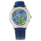 Kinderuhr aus Edelstahl mit blauem Lederarmband