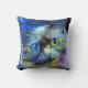 Impressionistin Cat Portrait Blue Yellow Black Kissen