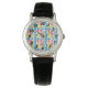 Diese Frauenuhr hat ein modernes Design aus abgerundeten Rechtecken, von denen einige mit Sternexplosionen versehen sind, in Retrofarben Rot, Gold, Grün und Türkis. Wenn Ihnen das Design gefällt, aber andere Farben bevorzugen, dann schreiben Sie mir.