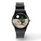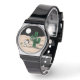 Uhr, Vintage Männeruhr mit schwarzem Lederarmband