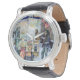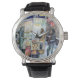 Uhr, Vintage Männeruhr mit schwarzem Lederarmband