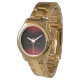 Eine elegante grafische Gestaltung mit dem lateinischen Sprichwort (übersetzt vom griechischen Philosophen Zenobio) in vino veritas, Bedeutung im Wein ist die Wahrheit. Die tiefblütige Rot-Schwarz-Wein-Thematik wird durch goldene Zahlen und Minutenzeichen betont.