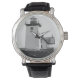Uhr, Vintage Männeruhr mit schwarzem Lederarmband