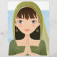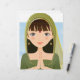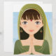 Schöne indische Frau in einer grünen Sari, die ihre Hände zusammenhält