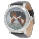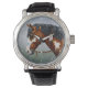 Uhr, Vintage Männeruhr mit schwarzem Lederarmband