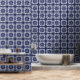 Leicht zu montieren Schale und Knüppel Tapete mit indigoblau-weißem mediterranem Fliesenmuster, inspiriert von portugiesischem Azulejo, mit einer originalen Illustration von eleganten Naturmotiven. Mit seinem modernen und dennoch klassischen Design mit aufwändigen Details eignet sich dieses Tapete perfekt für Bad, Küche, Wohn- oder Esszimmer. Mit diesem atemberaubenden, gemusterten Wandteppich, der Tradition mühelos mit einem zeitgenössischen Flair verbindet, schaffen Sie Ihrem Zuhause eine zeitlose Eleganz und schaffen einen stilvollen und einladenden Wohnraum.