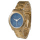 Eine wunderschöne, übergroße "Gold" Uhr mit einem Imitat, das in zwei Farbtönen von Indigo Blue das Muster "Lace Floral" zeigt. Als Teil der Posh & Painterly 'Indigo Lace' Kollektion können Sie diese Uhr ganz einfach anpassen, indem Sie die Patternettile des Indigo Lace drehen oder verändern. Dieses Muster passt auch zu jeder Armbanduhr.