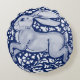Auf diesem wunderschönen Kissen wird meine urheberrechtlich geschützte Keramik von Blau und Weiß Kaninchen neu interpretiert.