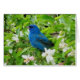 Der Jagdvogel Indigo steht unter den Frühlingsblüten des Krabappels. Wildnis, Blumenbild in New Hampshire aufgenommen.