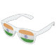 The Indian flag is a charged horizontal tricolour with in the middle an emblem. The used colors in the flag are blue, orange, white, green. The ratio of the Indian flag is 2:3. The Flag of India was adopted in 1947.