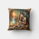 Indische Frau mit Tiger bei Sonnenuntergang Kissen