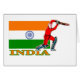 Ein indischer Kricket-Spieler vor der indischen Flagge mit dem Ländernamen Indien unten. Großes Geschenk für Kricketspieler und Kricketfans alles Alters