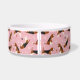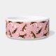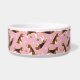 Niedliche Hunde aus Beagle mit Pfosten und Hundeknochen auf einer rosa Hundeschüssel mit eigenem Haustiernamen.