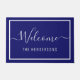 Individuelle Name Elegante Script Welcome Navy Blu Fußmatte