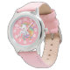 Kinderuhr aus Edelstahl mit rosa Lederarmband