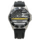 Zeige deine Anerkennung für die Männer und Frauen des Polizeidienstes mit dieser dünnen goldenen Linie amerikanischen Flaggen Stil Uhr. Diese Uhr zeigt die amerikanische Fahne in Schwarz-Weiß mit einer blauen Linie, die über die Mitte läuft. Eine schwarze Typenschild befindet sich in einem eleganten und dennoch kräftigen Schriftart am unteren Ende der Uhr mit Ihrem Namen oder dem Namen Ihres Geschenkempfängers. Das ist ein großartiges Geschenk für jeden Rookie-Polizisten oder Ruhestand, oder vielleicht für einen Polizisten, der gerade eine Werbeaktion got hat. D.h. der Vizediener von Kadet, Rookie.
