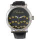 Individuelle Name Gelbe Sonnenblumen auf schwarz Armbanduhr