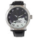 Uhr, Vintage Männeruhr mit schwarzem Lederarmband