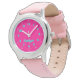 Kinderuhr aus Edelstahl mit rosa Lederarmband
