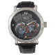 Uhr, Vintage Männeruhr mit schwarzem Lederarmband