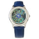 Kinderuhr aus Edelstahl mit blauem Lederarmband