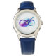 Kinderuhr aus Edelstahl mit blauem Lederarmband