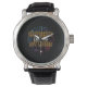 Uhr, Vintage Männeruhr mit schwarzem Lederarmband