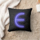 Initial E in glühender Markise lila Neonbeleuchtung auf städtischen Ziegelmauer. Kontaktieren Sie mich für eine erste Briefänderung.