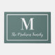 Schalten Sie Ihren Zuhause mit dieser eleganten, maßgeschneiderten monogramm-Doormat in grauem aquamarinem Blau / Grün und Weiß auf. Hinweis: Die Farben können geändert werden. Personalisieren Sie mit dem Nachnamen Ihrer Familie im Skript und einem Serifenstil Monogramm Initial. Das Design umfasst einen gerahmten Rahmen.