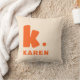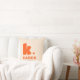 Kopfkissen mit dem Monogramm-Initial in einem großen, fetten Schriftart und Ihrem Namen unten. Orangefarbener Text auf einem leichteren Hintergrund. Farben sind im Designwerkzeug anpassbar.