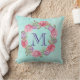 Initial rosa Floral Watercolor Wreath Monogramm Kissen