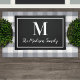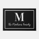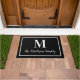 Schalten Sie Ihren Zuhause mit dieser eleganten, individuell gestalteten, monogramm-Türmatte in Schwarz-Weiß-Farbtönen auf. Hinweis: Die Farben können geändert werden. Personalisieren Sie mit dem Nachnamen Ihrer Familie im Skript und einem Serifenstil Monogramm Initial. Das Design umfasst einen gerahmten Rahmen.