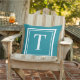 Stilvolles Kissen mit Akzent im Freien mit einem Serifenmonogramm, den Sie mit Ihrem Vor- oder Nachnamen individuell gestalten können, gerahmt durch ein einfaches Doppelquadrat in weißer Farbe mit aquamarin grüner Hintergrundfarbe. Sie können die Hintergrundfarbe anpassen, um sie mit der Wohngestaltung abzustimmen.