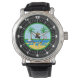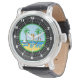 Uhr, Vintage Männeruhr mit schwarzem Lederarmband