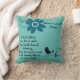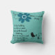 Inspiration Zitat mit Bird werfen Kissen. Aqua aquamarine Hintergrundfarbe mit Aqua-Blumenakzent, mit einem inspirierenden Zitat über das Selbstvertrauen und die eigenen Flügel. Vollständiges Zitat: "Ein Vogel, der auf einem Baum sitzt, hat nie Angst vor dem Zerbrechen des Zweiges, weil ihr Vertrauen nicht in den Zweig, sondern in ihren eigenen Flügeln liegt. Glaube immer an dich" Kleiner Vogel sitzend auf einem wirbelnden Ast.